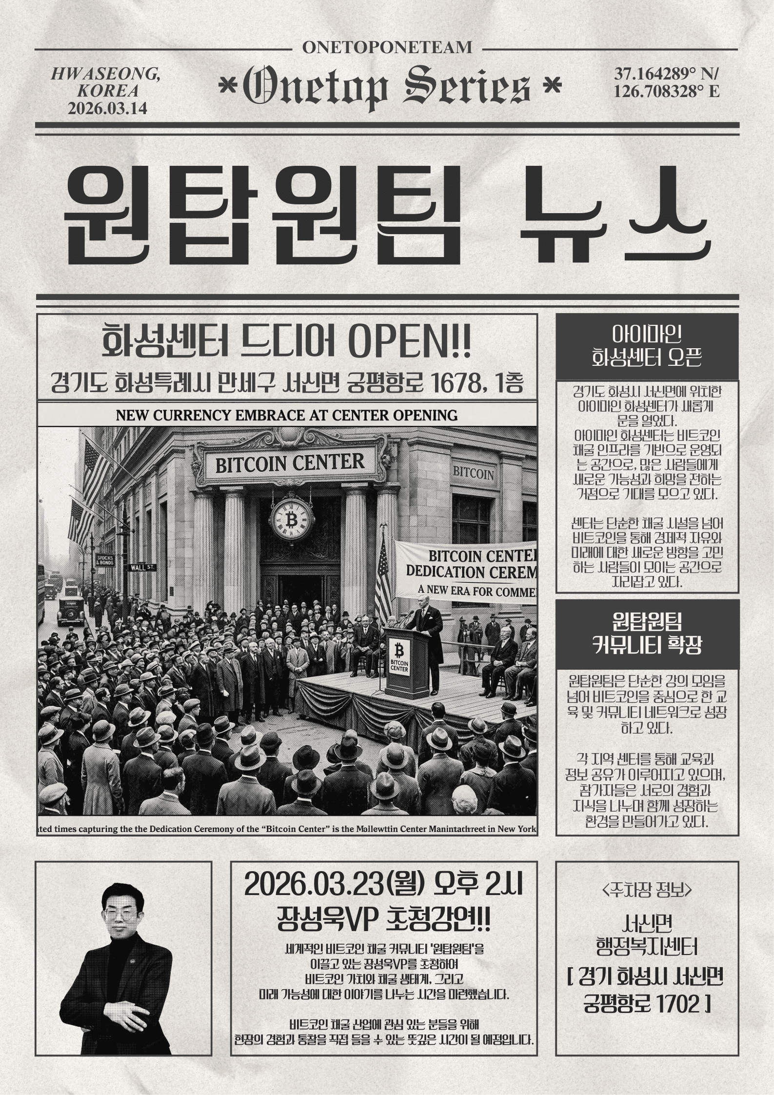 새로운 시작을 함께 축하해 주시고, 화성센터가 원탑원팀의 열정적인 에너지를 널리 퍼뜨리는 중심지가 될 수 있도록 많은 응원 부탁드립니다.